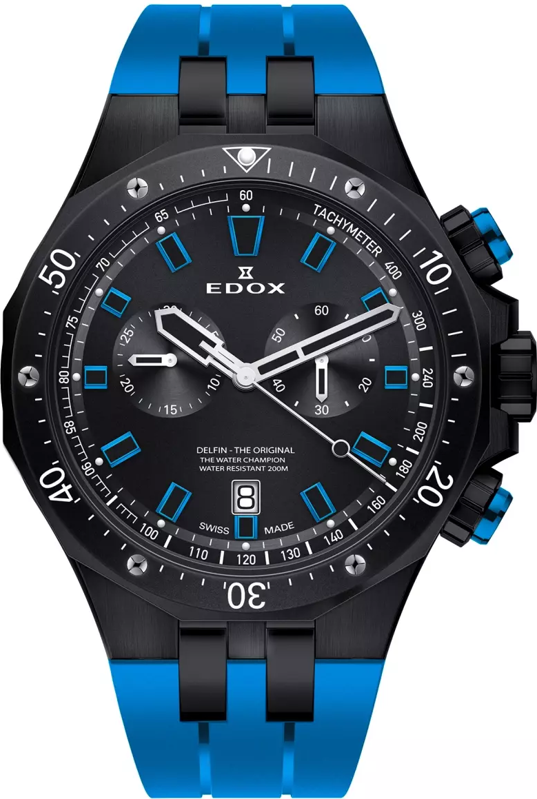 Funkce:Čas, datum, chronograf = stopky, tachymeter = km/h, jednosměrně otočná luneta, strojek swiss quartz Ronda - přesnost chodu do 0,4 vteřiny denně, svítící ručičky a indexy (luminiscence), krytá šroubovací korunka (krytí chrání korunku před případnými nárazy)