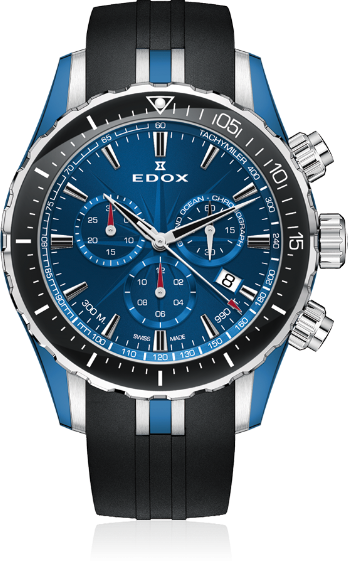 Funkce:Čas, datum, chronograf = stopky s přesností 1/10 vteřiny max 30 minut, číselník čitelný i v noci, jednosměrně rotační luneta, stroj swiss Ronda 5030.D - přesnost chodu 0 – 0,4 vteřiny denně, svítící ručky a indexy